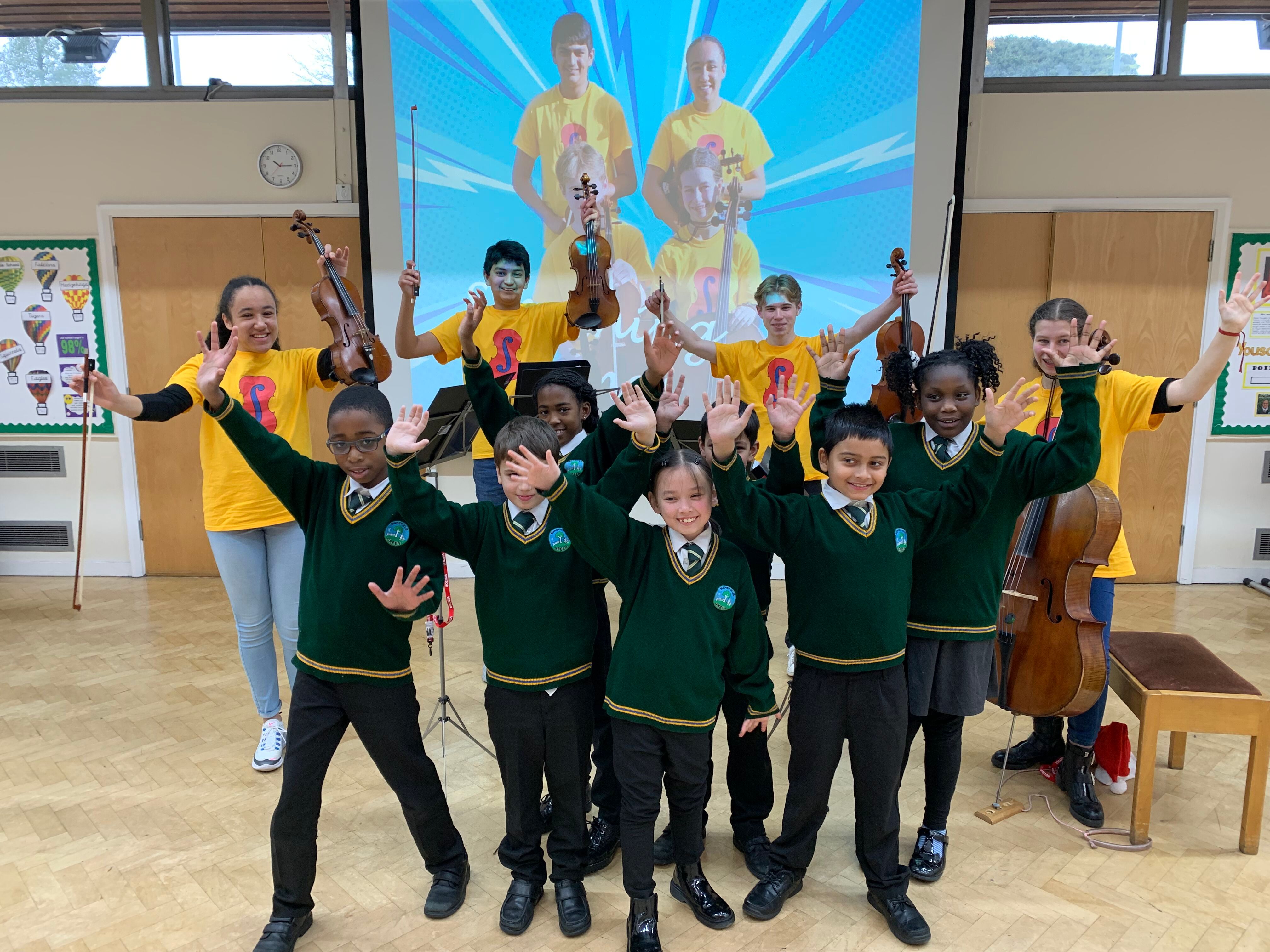 Book The Stringcredibles to perform in your school! Fun and interactive shows for primaries. We offer workshops too!